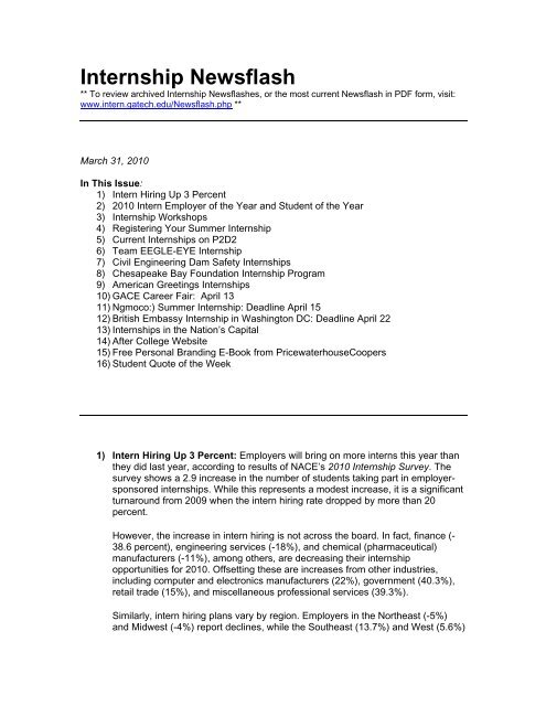 Internship Weekly Newsflash The Georgia Tech Internship Program